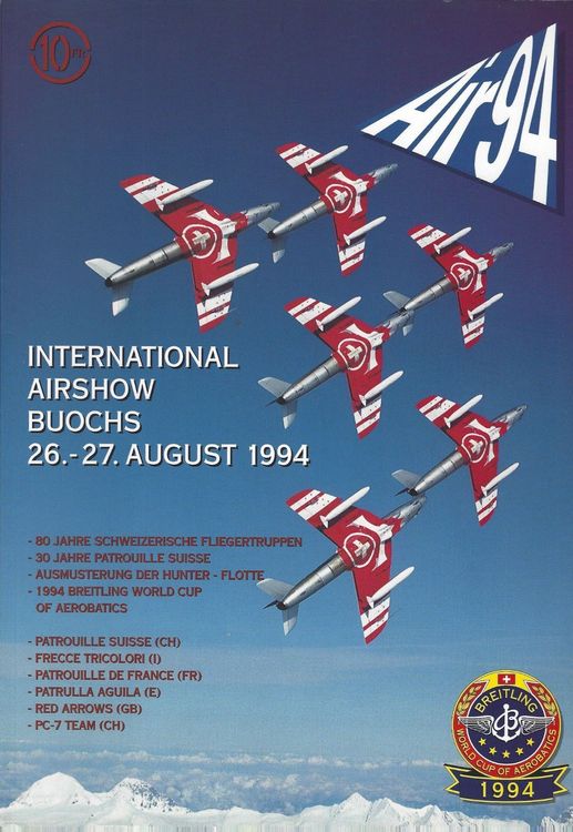 26 e 27 agosto, una due giorni rimasta negli annali delle manifestazioni aeree in Svizzera se non altro per il grande pattuglione di 40 Hunter F58 – velivolo in dotazione alla Patrouille Suisse – alla vigilia della dismissione di tale aereo.