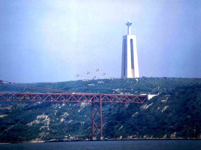 Le «frecce tricolori» hanno iniziato ieri a Lisbona il loro ciclo di esibizioni che le porterà nei cieli di tutta Europa.