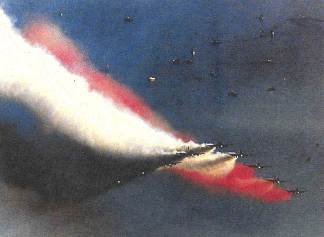 Sarebbe facile dire che la squadra delle Frecce Tricolori tende ad avere la testa tra le nuvole più che i piedi ben piantati per terra. Appena 24 ore dopo essere atterrato a Dubai, il team di 10 piloti è decollato per mostrare alla folla sbalordita a Dubai 2001 quanto siano bravi a volare gli italiani.