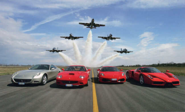 Il rosso delle Ferrari ed il blu dei jet della Pattuglia Acrobatica Nazionale si sono incontrati a Rivolto, giovedì 30 marzo, per effettuare un servizio giornalistico per la rivista “EVO”.