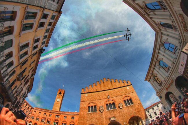 Le Frecce Tricolori sui cieli di Treviso per il 7 aprile. Domenica 7 aprile ricorrerà l’80° anniversario del bombardamento di Treviso che nel 1944 provocò 1600 vittime fra i civili e la distruzione quasi totale del patrimonio edilizio della Città.