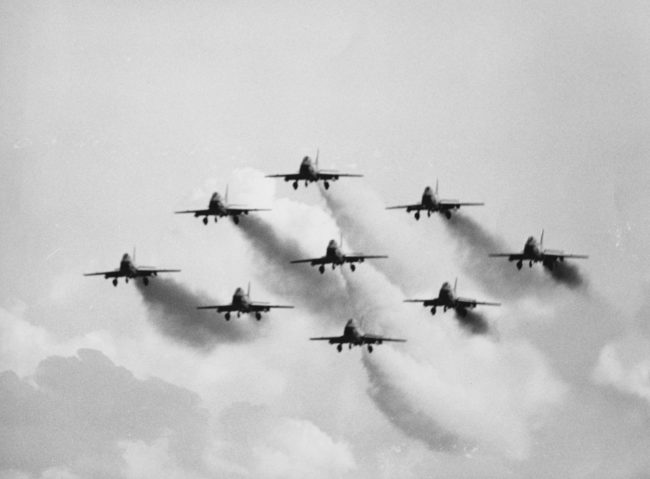 Pochi giorni di tempo per rimettere in piedi il programma di “9”, perché domenica 21 le “Frecce Tricolori” dovevano partecipare a Lyon-Bron all'”air-meeting” organizzato dall’Aero Club du Rhône.