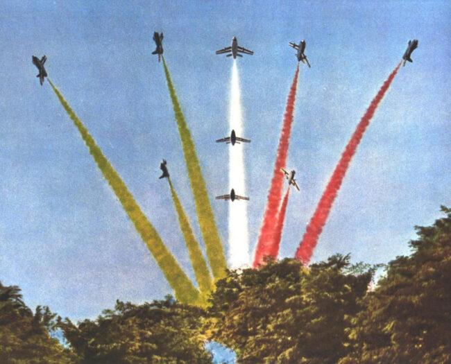 In programma tutti e soltanto velivoli disegnati e costruiti dalle “Case” francesi. Era l’esaltazione della “grandeur” aeronautica! Di contorno le pattuglie acrobatiche per ravvivare la chiusura del Salone.