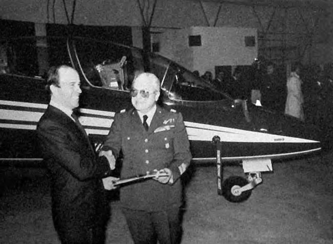 Con una breve cerimonia ufficiale svoltasi all’aeroporto di Venegono il 6 gennaio 1982, il Dott. Fabrizio Foresio, Presidente dell’Aermacchi ha consegnato il primo velivolo MB-339 allo PAN, alla presenza di S.E il Gen. Venturiní, comandante la prima Regione Aerea.