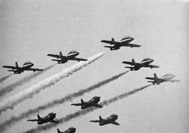 La prima uscita all’estero dello P.A.N. in formazione completa di nove velivoli più un solista, è coincisa con lo prima presentazione delle Frecce Tricolori in Svezia.