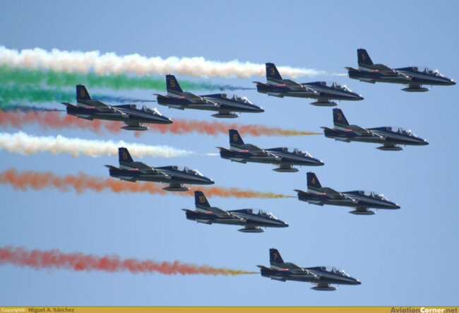Un appuntamento importante quello del 20° anniversario del team Aguila, la pattuglia acrobatica spagnola, a cui le Frecce Tricolori non potevano mancare. Aire 06, questo il nome della manifestazione aerea che si è svolta nell’incantevole scenario del “Mar Menor” vicino a San Havier a Sud di Valencia.