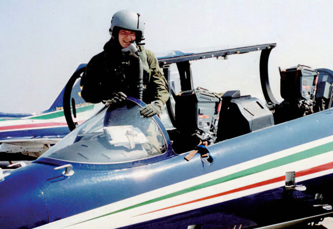 Ha rappresentato l’Italia nel mondo con le Frecce Tricolori ed è venuto a contatto con le massime autorità internazionali, eppure ha conservato intatte professionalità, riservatezza e modestia, qualità che condivide con il suo idolo Neil Armstrong.