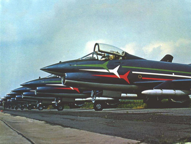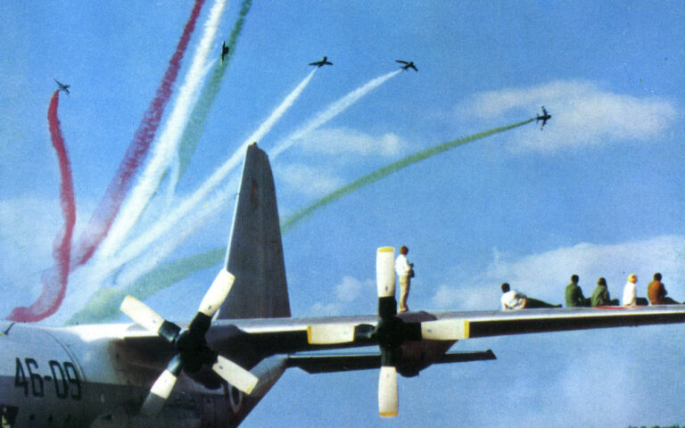 La Frecce Tricolori alla Manifestazione Aerea Lucca ’78 con l'”Alto di 9+1 G.91″:…