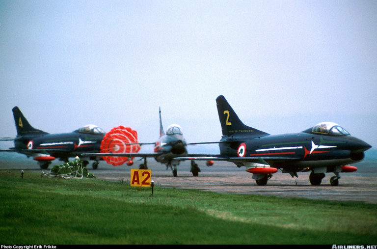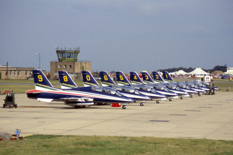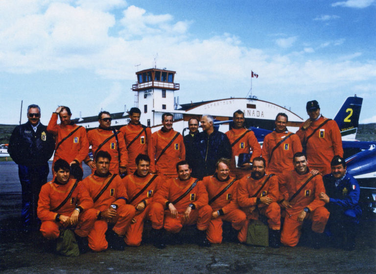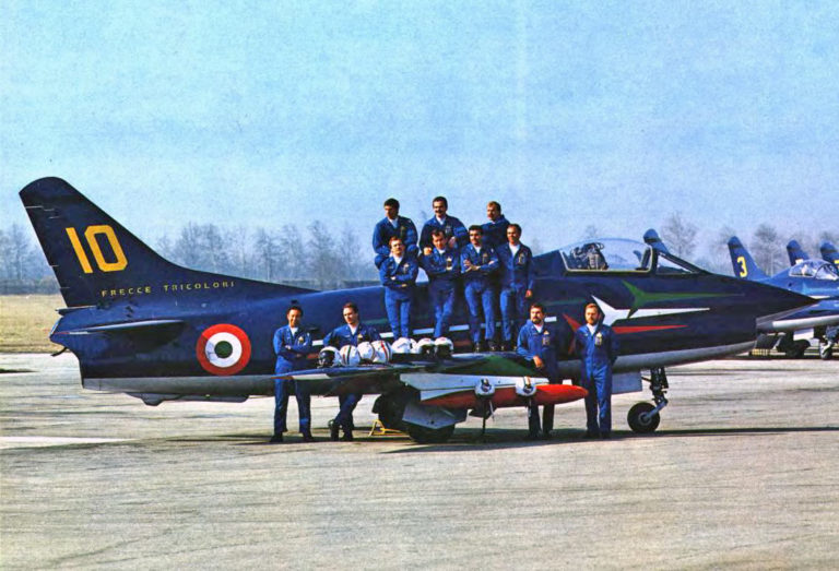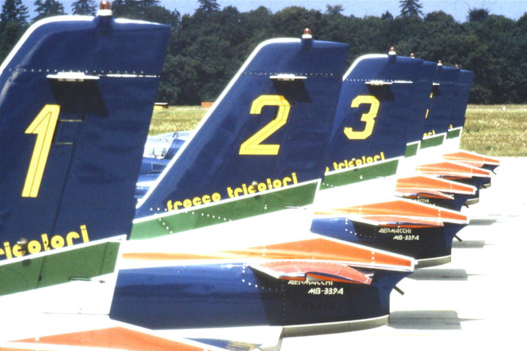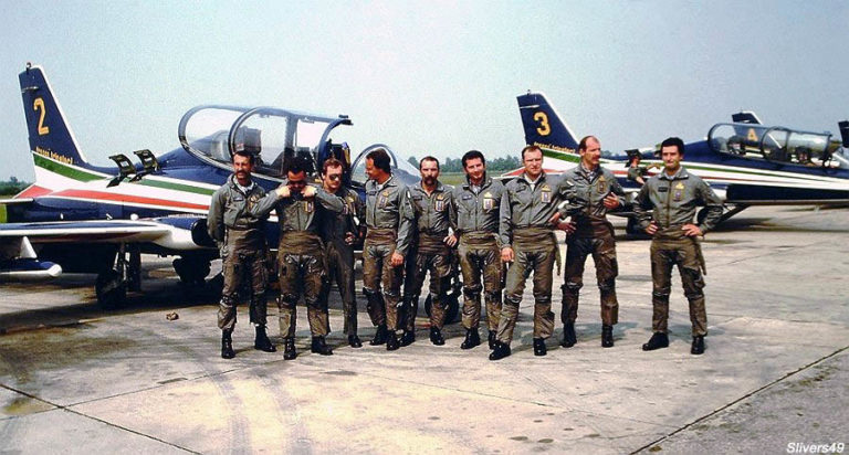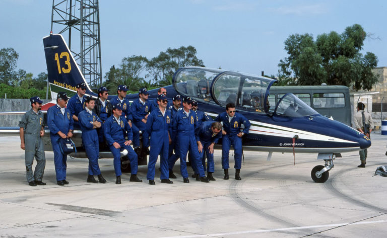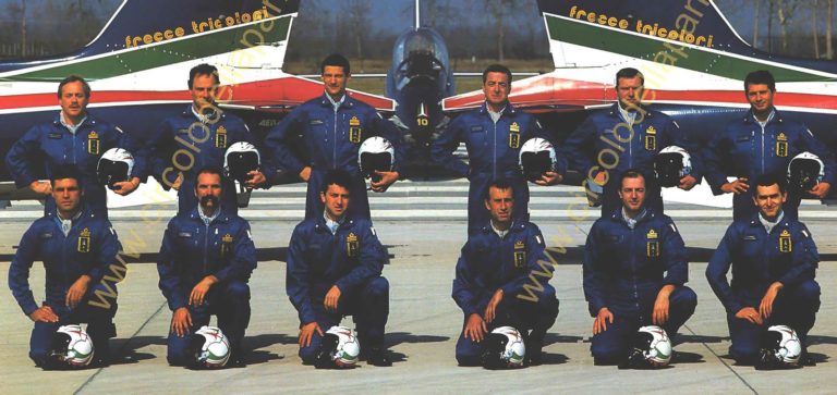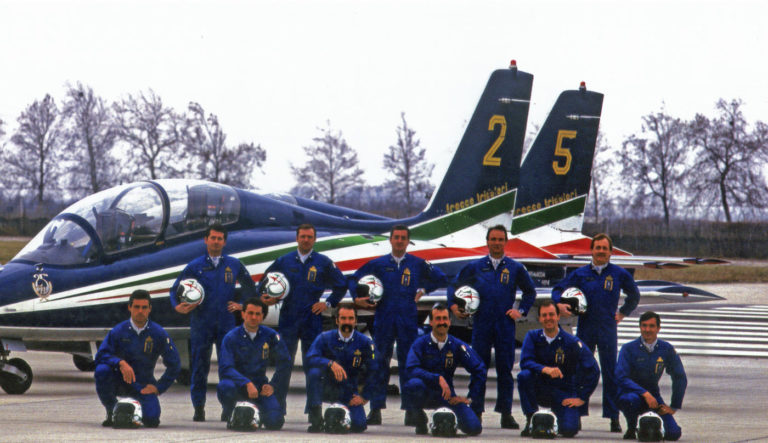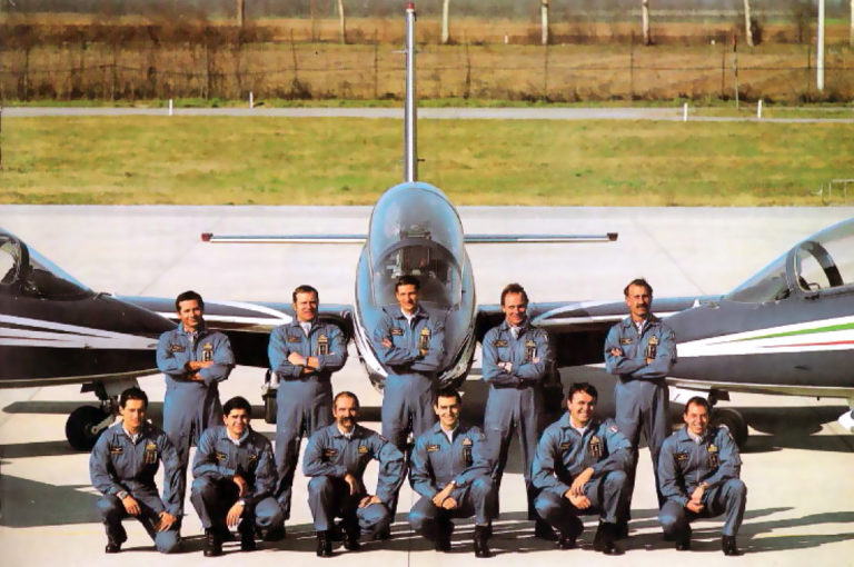 Il team dimostrativo dell’Aeronautica Militare fotografato all’aeroporto di Genova nel settembre 1983