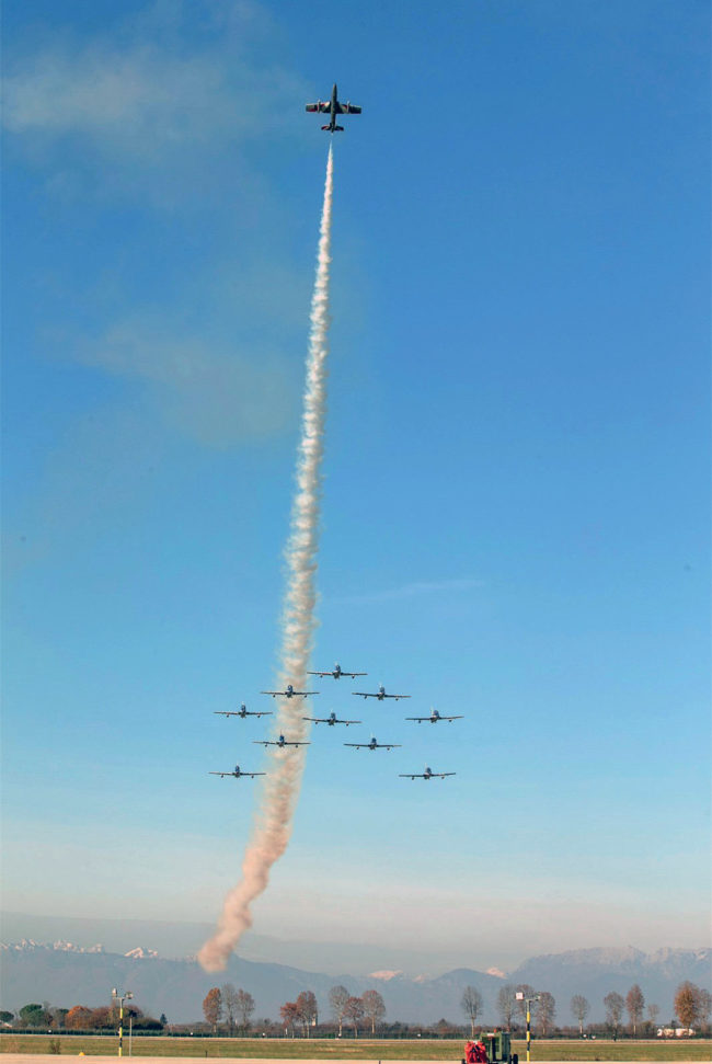 All’aeroporto di Rivolto. lontana periferia di Udine, dove dal 1961 abita la pattuglia acrobatica dell’Aeronautica nota con l’affettuoso soprannome di Frecce Tricolori, si entra in punta di piedi….