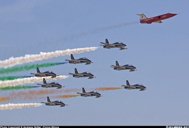 Per salutarlo, il raduno internazionale degli F-104 e delle pattuglia acrobatiche delle aeronautiche militari di 15 paesi, fra cui le Frecce Tricolori: un appuntamento che ha richiamato migliaia di persone all’aeroporto di Pratica di Mare.