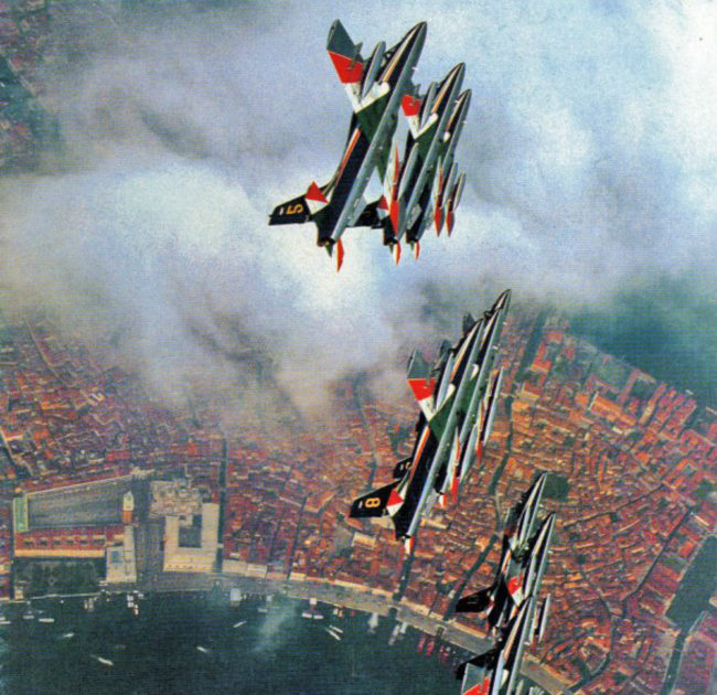 Famose in tutto il mondo per la bravura e l’ardimento dei suoi componenti, le «Frecce Tricolori» — pattuglia acrobatica nazionale — sono le eredi della tradizione nata a Campoformido, in Friuli, nel 1929.