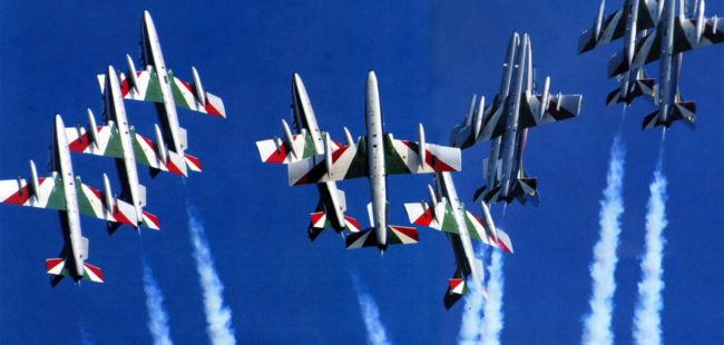 Sono gli acrobati del cielo e dunque l’espressione più alta, letteralmente, di italianità. Volano come nessuno ha volato mai e volano in tutto il mondo le Frecce Tricolori fucina di talenti e di tecnologia, di carattere e di confronti, di pazienza e di passioni.