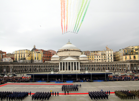 Giovedì 28 Marzo, in Piazza del Plebiscito, a Napoli, si è svolta la cerimonia per l’anniversario dei 90 anni dalla costituzione dell’Aeronautica Militare. Nell’occasione si è tenuto anche il giuramento e il battesimo del corso “Pegaso V” dell’Accademia Aeronautica di Pozzuoli.