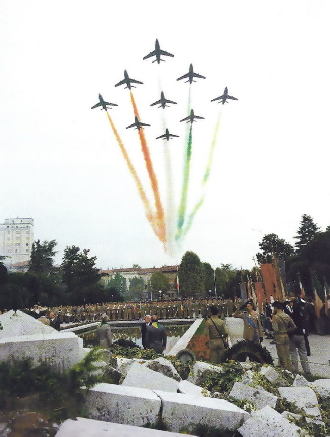In cielo l’Aeronautica ha dato spettacolo di coraggio e di tecnica. Le Frecce Tricolori sono la tradizione dell’antico coraggio del volo.